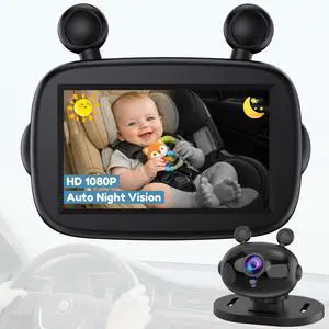 Baby Car Camera for Backseat HD 1080P, 150° Wide Angle, Night Vision, Easy Installation, Adjustable LED Light, 4.3 LCD Display, Anti-Glare