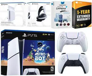 Sony PlayStation 5 Astro Bot Slim Digital Bundle with Disc Drive, Pulse Elite Headset, Extra Controller, PlayStation Portal, Vertical Stand, MightySkins Game Collection Services and 1 Year Extended W