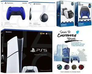 Sony Playstation 5 Slim Digital with White Pulse Headset, Extra Cobalt Blue Controller, Gamer Kit, Charge Dock and MightySkins Decal Voucher + 1 Year CPS Extended Warranty