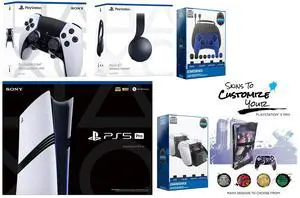 Sony PlayStation 5 Astro Bot Slim Digital Bundle with Disc Drive, Pulse Elite Headset, Extra Controller, PlayStation Portal, Vertical Stand, MightySkins Game Collection Services and 2 Year Extended W