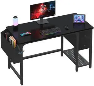 Gaming Desk with Fabric Drawers, 47 Inch Computer Desk for Home Office, Modern Simple Study Writing Table PC Desks for Bedroom, Black