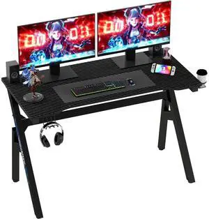 Bobobigo 47" Gaming Desk | Black & Blue | Carbon Fiber Textured Computer Desk | Sturdy Steel Frame,Cup Holder, Headphone Hook, Cable Management Holes, Adjustable Leg Pads | for Gamers,Home,Office