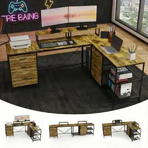 Type: L-shaped, L-shaped desk, Industrial computer desk, Long gaming desk, Corner desk with storage, Double workstation desk, Rustic home office desk, Desk with drawers and shelves, Extra long desk with monitor stand, Vintage wood and metal desk, Reversible L-shaped desk,L shaped gaming desk, Corner computer desk, Large home office desk, Industrial