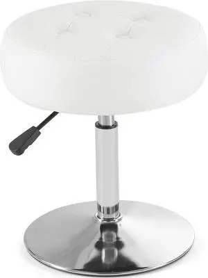 White Vanity Chair for Makeup Room Round Ottoman Tufted PU Leather Makeup Chair Vanity Stools for Bathroom Height Adjustable 360 Swivel