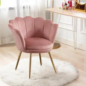 chairus Velvet Accent Chair, Upholstered Vanity Chair with Shell Back & Gold Metal Legs, Modern Small Armchair Side Chair Guest Chair for Living Room Bedroom Makeup Dressing Room, Dusty Rose Pink