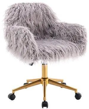 KCC Fluffy Office Desk Chair, Faux Fur Modern Swivel Armchair with Wheels, Soft Comfy Fuzzy Elegant Accent Makeup Vanity Chairs for Women Girls, Home Living Dressing Room Bedroom, Gray