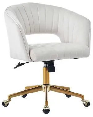 Kiztir Vanity Chair with Wheel, Modern Velvet Home Office Chair with Back, Criss Cross Armchair for Vanity, Living Room, Bedroom and Study (Beige)