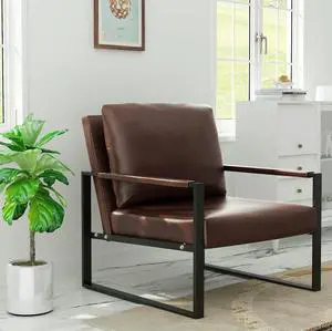 Armen Living Adalyn Faux Leather and Wood Dining Room Accent Chair, Black/Walnut 19D x 25W x 30H in