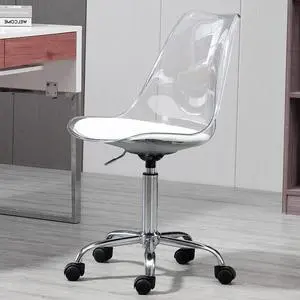 HOMEFUN Clear Desk Chair with Cushion, Armless Acrylic Rolling Chair Height Adjustable Ghost Swivel Molded Plastic and Wheels, Clear