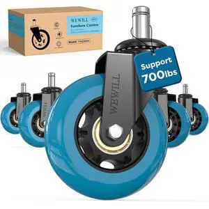 Office Chair Wheels - Rubber Casters Replacement Universal Fit 98% Chair(Set of 5) Heavy Duty 3 Inch Smoothly & Quietly Safe for All Floor, Hardwood, Tile, Carpet, Noise Free - Navy