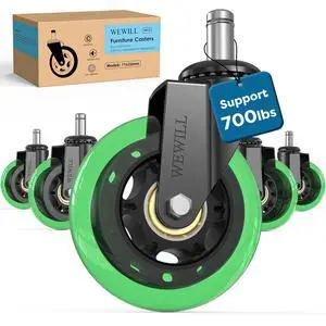 Office Chair Wheels - Rubber Casters Replacement Universal Fit 98% Chair(Set of 5) Heavy Duty 3 Inch Smoothly & Quietly Safe for All Floor, Hardwood, Tile, Carpet, Noise Free - Green