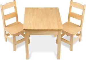 Melissa & Doug Solid Wood Kids Table and Chairs (2), Premium Quality Wooden Toddler Table and Chair Set for Kids Playroom Furniture & Montessori Classroom Furniture for Boys & Girls Ages 3+