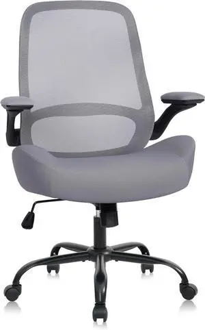 Ninecer Big and Tall Office Chair 400lb Wide Seat, High Back Leather Executive Office Chair with Flip-up Arms, Ergonomic Computer Desk Chairs for Home Office, Gray/Blue