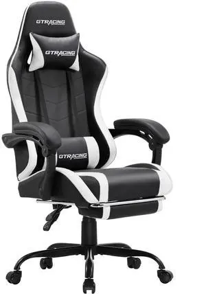 DIXSG Ergonomic GTWD-200 Gaming Chair with Adjustable Pillows and Footrest, White