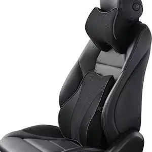 Lumbar Support and Car Neck Pillow for Office Chair and Car Seat Softness Memory Foam Erognomic Seat Cushion with Adjustable StrapComfortable Ergonomic Design (Black, Polyester)