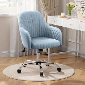 Warmiehomy Velvet Desk Chair for Home Office, Modern Adjustable Swivel Task Chair, Women Vanity Chairs with Arm Rest for Bedroom Dressing Room, Light Blue