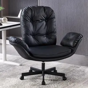 Criss Cross Chair with Armrests & Wheels for Cross-Legged Sitting, Comfortable Adjustable Swivel Office Desk Chair PU Leather Vanity Chair for Home, Makeup and Bedroom (Black)