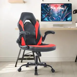 DIXSG Computer Gaming Chair, Ergonomic PU Leather Racing Chair with Flip-up Armrest, Black Red