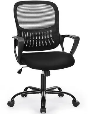 Flash Furniture Flash Fundamentals Mid-Back Black Mesh Swivel Ergonomic Task Office Chair with Arms
