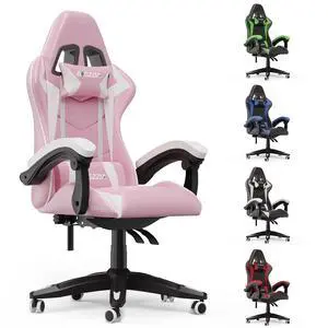 Bigzzia Gaming Chair Office Chair, Ergonomic Game Chair with Height Adjustable Headrest and Lumbar Support for Adults Teens, pink