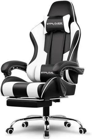 GTPLAYER Gaming Chair, Computer Chair with Footrest and Lumbar Support, Height Adjustable Game Chair with 360°-Swivel Seat and Headrest and for Office or Gaming (White)