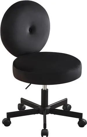 Furniliving Round Armless Desk Chair, Small Upholstered Velvet Vanity Chair with Wheels, Adjustable Swivel Task Rolling Stool Chair for Bedroom, Study Room, Black