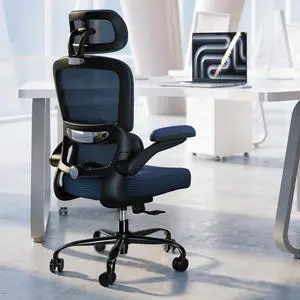 TRALT Ergonomic Office Chair - Desk Chair with Adjustable Headrest Lumbar Support Computer Chair - Mesh Comfy Chair with Flip-up Armrests - Gaming Chairs for Adults Home Office (Leather, Navy Blue)