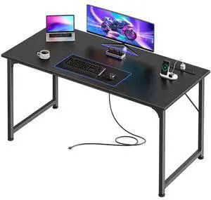 47 X 20 Inch Office Computer Desk with Power Outlets and USB-C Port, Larger Gaming Desk, for Home Office, Study, Bedroom, Writing Work from Home Table, Metal Frame, Black