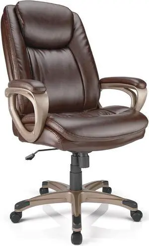 Realspace Tresswell Bonded Leather High-Back Chair, Brown/Champagne