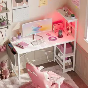 VICTONE L Shaped Gaming Desk 47 Inch Computer Corner Desk, Home Pc Desk, Office Writing Workstation with Large Monitor Stand, Space Saving Table (Black)