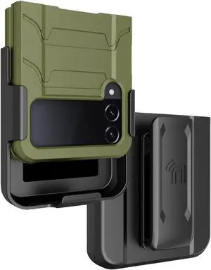 Rugged Phone Case and Belt Clip Stand for Samsung Galaxy Z Flip 4 5G - Olive