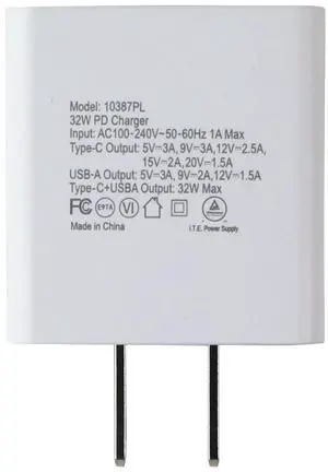 PowerLab 32W USB-C / USB-A Wall Charger with Power Delivery - White