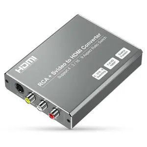 RCA Svideo to HDMI Converter, RCA Composite CVBS AV or Svideo + R/L Audio Input to HDMI Output Upscale Converter, Supports 720P/ 1080P Output Switch for N64, PS2, Wii, DVD