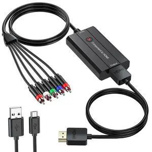 Component to HDMI Converter, Aluminum Alloy YPbPr + R/L to HDMI Adapter, 1080P Component 5RCA RGB Video Audio Converter for PS2 PS3 DVD Xbox 360 Nintendo Wii to Smart HDTV Monitor Projector