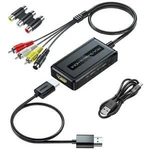 2 in 1 RCA/S-Video to HDMI Converter with 720P/1080P Ouptut Switch, Svideo Composite AV to HDMI Compatible with VHS/DVD/STB/N64/PS2/Wii