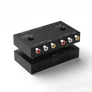 2 AV to HDMI, 1080P/720P TV 2 Way RCA Composite CVBS AV Switch to HDMI Video Audio Converter Adapter Support 4:3/16:9 Switching, for Sega Xbox PS2 PS3 N64 NGC SNES WII VHS VCR Camera DVD