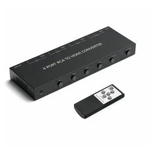 4 Port RCA to HDMI Converter - 720/1080P Support, 16:9/4:3 Switcher Compatible with Wii, N64, PS2, PS3, VHS, VCR, DVD Players (4 AV Inputs, 1 HDMI Output)
