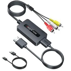 RCA to HDMI Converter, 1080P RCA Composite AV to HDMI Video Converter Cable Compatible with Wii NES N64 PS2 Xbox 360 Sega Genesis VHS VCR DVD Players to TV Display with HDMI Interface