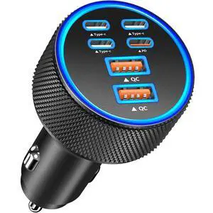 Warranty: We Provide 8-Years Warranty and Lifetime Technical Support for 6-Port 120W USB-C Dynamic Power Adapter 4USB-C & 2USB-A Cigarette Lighter PD/QC Fast Car Charger.