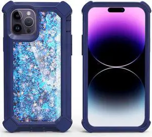 Military Grade Quicksand Glitter Waterfall Hybrid Case for iPhone 14 Pro - Blue