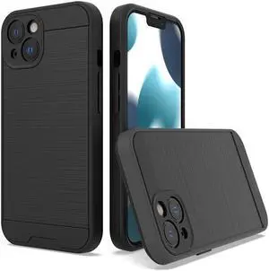 Brushed Metal Texture Hybrid Armor Case for iPhone 13 - Black
