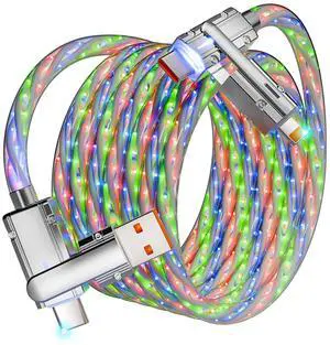 4-in-1 USB C Cable 6ft 240W Max Multi Chubby Fast Charging Cord USB A/C to C/Lightning Cable with Light for iPhone 16 15 14 Pro/MacBook/iPad/ Galaxy S25/S24/Laptop