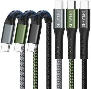 3-Pack 3FT 60W Type C to Type C Nylon Braided USB C Fast Charging Cable for S23 Ultra/A14/S23/A54 iPhone 16/Pro Max iPhone 15/Pro Max Pixel 8 7 Redmi iPad Pro MacBook Pro and More (3FT)