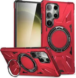 Military Grade Hybrid Case with MagSafe Magnetic Ring for Samsung Galaxy S23 Ultra - Red