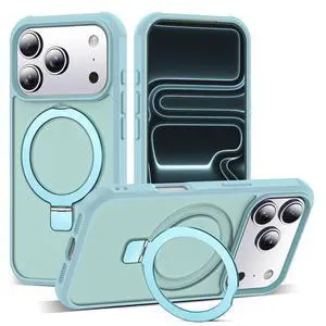 Compatible with iPhone 17 Pro Case with Invisible Magnetic O-Ring Stand Military-Grade Translucent Phone Case for iPhone 17 Pro 6.3" [Compatible with Mag-Safe][Great Grip Feeling], Blue