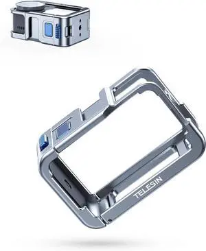 TELESIN Ultra-light Aluminum Camera Cage Compatible with D-J-I Action 5 Pro Action 4 Action 3, Fits with ND CPL Lens Filter on, Protective Camera Frame with 1/4 Cold Shoe, for Video Light Microphone