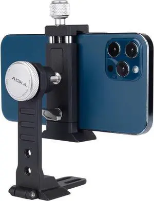 AOKA Metal Phone Tripod Mount, Arca Compatible Base with Cold Shoe, 360° Swivel and 180° Tilt Adjustment, Includes Multiple 1/4 Bolt Expansion Ports, Compatible with iPhone 16Pro Max Galaxy S24 Ultra