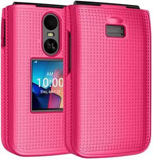 Grid Texture Hard Case Slim Cover for TCL Flip 4 Phone - Bright Pink