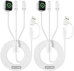 2 Pack USB C/A Multi Charging Cable 3 in 2 for iWatch Charger Travel Essentials Fast Charging Compatible with iWatch Series 10 /Ultra/SE/9/8/7/6/5/4/3/2/1 & for iPhone 16/15/14/13/SE/Galaxy S25 [4FT]