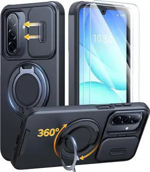 for Galaxy A17-5G Case [2 Front Frame] [Bulit-in Magnetic Slide Camera Cover & Kickstand] Heavy Duty Protection Shockproof A17-5G Case with Screen Protector 6.7 inch Black